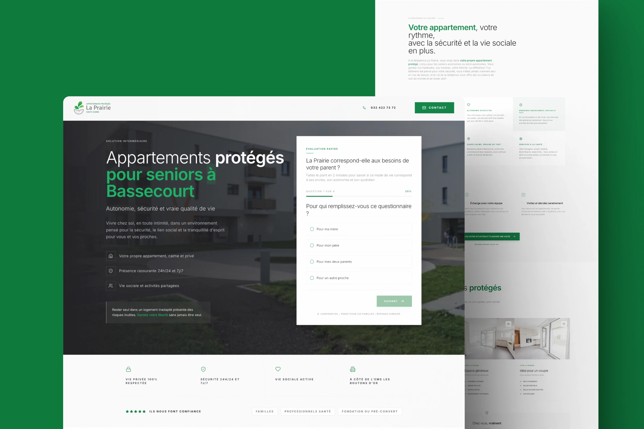 La Résidence La Prairie, établissement d'appartements protégés pour seniors à Bassecourt, avait une excellente réputation locale mais reposait uniquement sur le bouche-à-oreille. Les familles qui cherchaient un logement adapté en ligne ne la trouvaient pas.